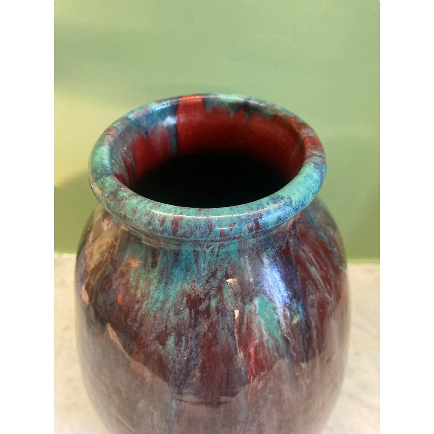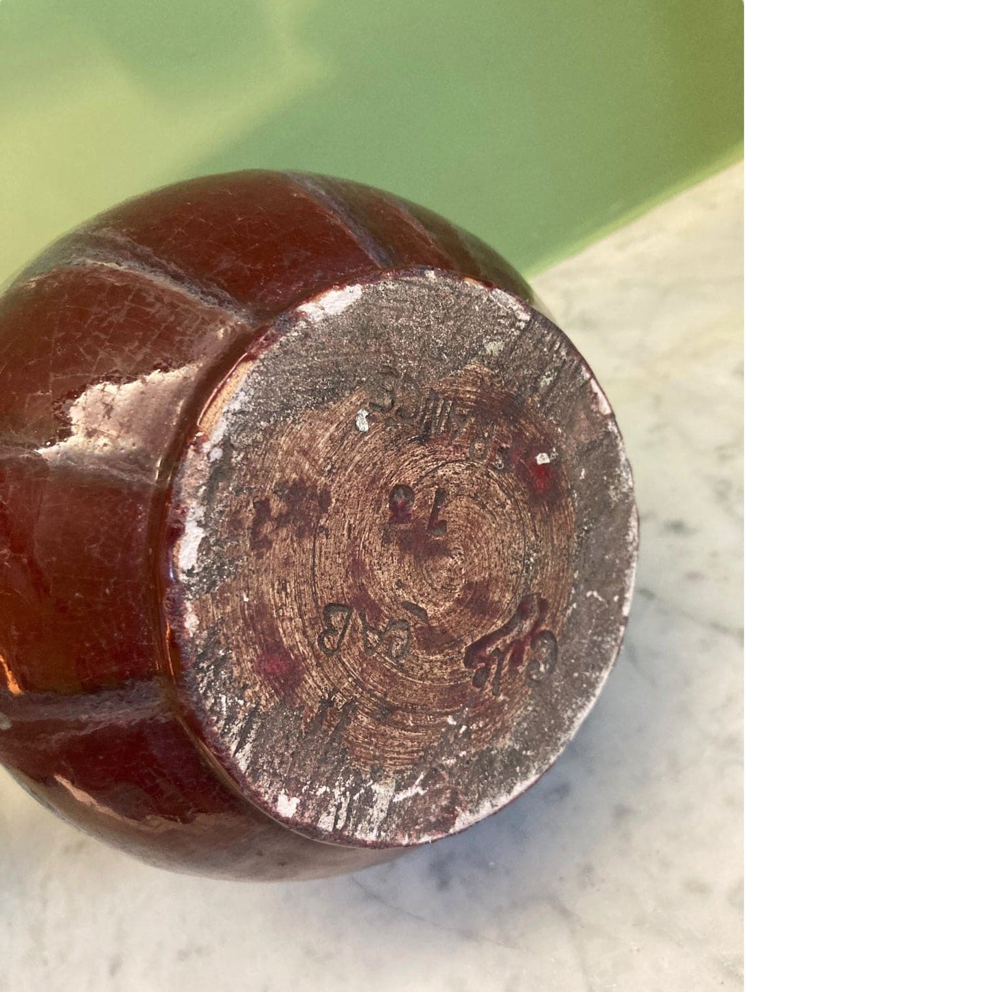 Old ceramic vase with an ovoid shape and a narrow neck.