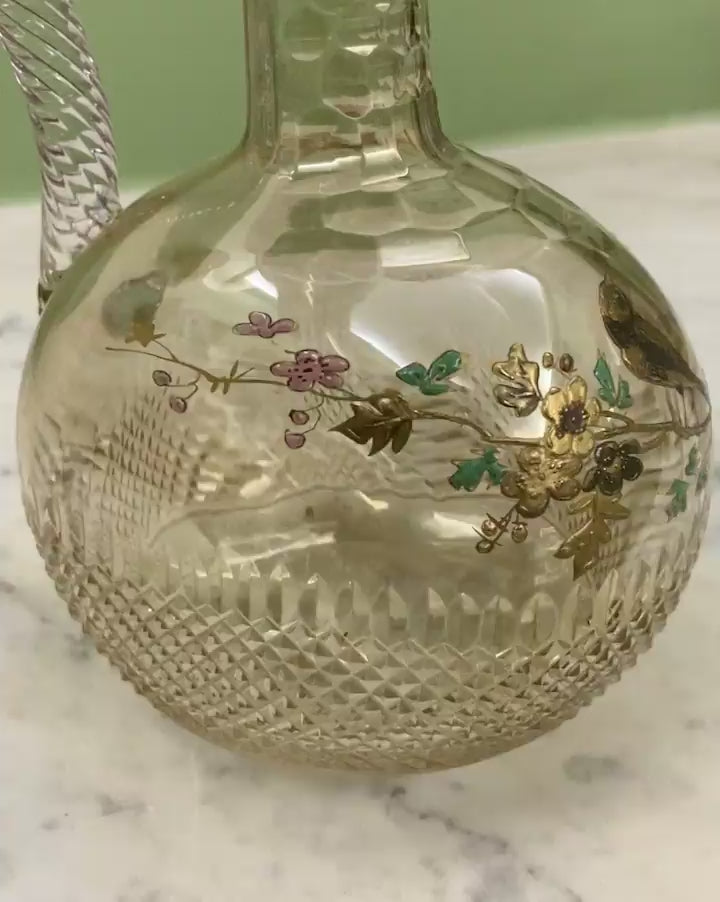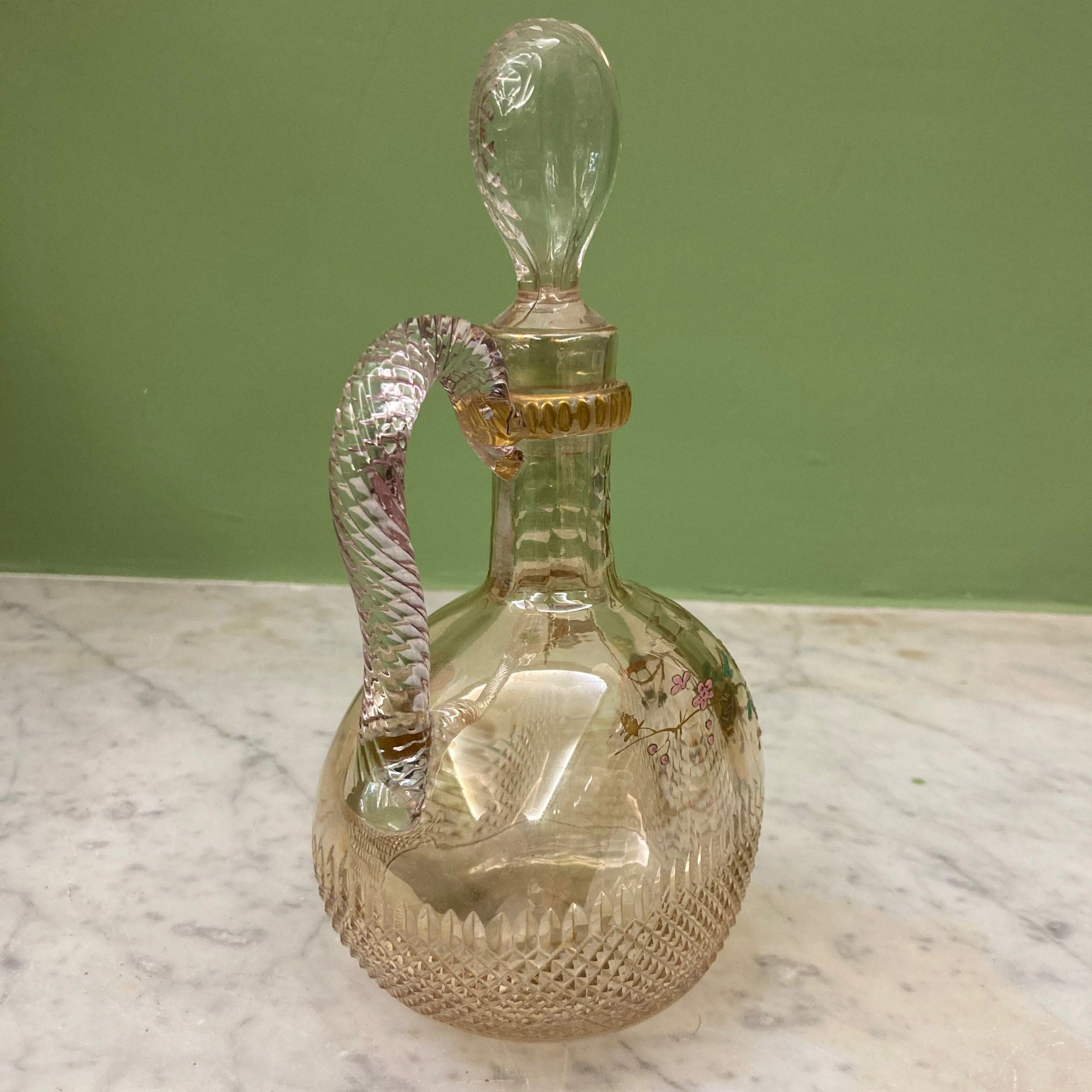 Antique 19th century liqueur decanter. (DLG Baccarat) cut crystal with bird decor