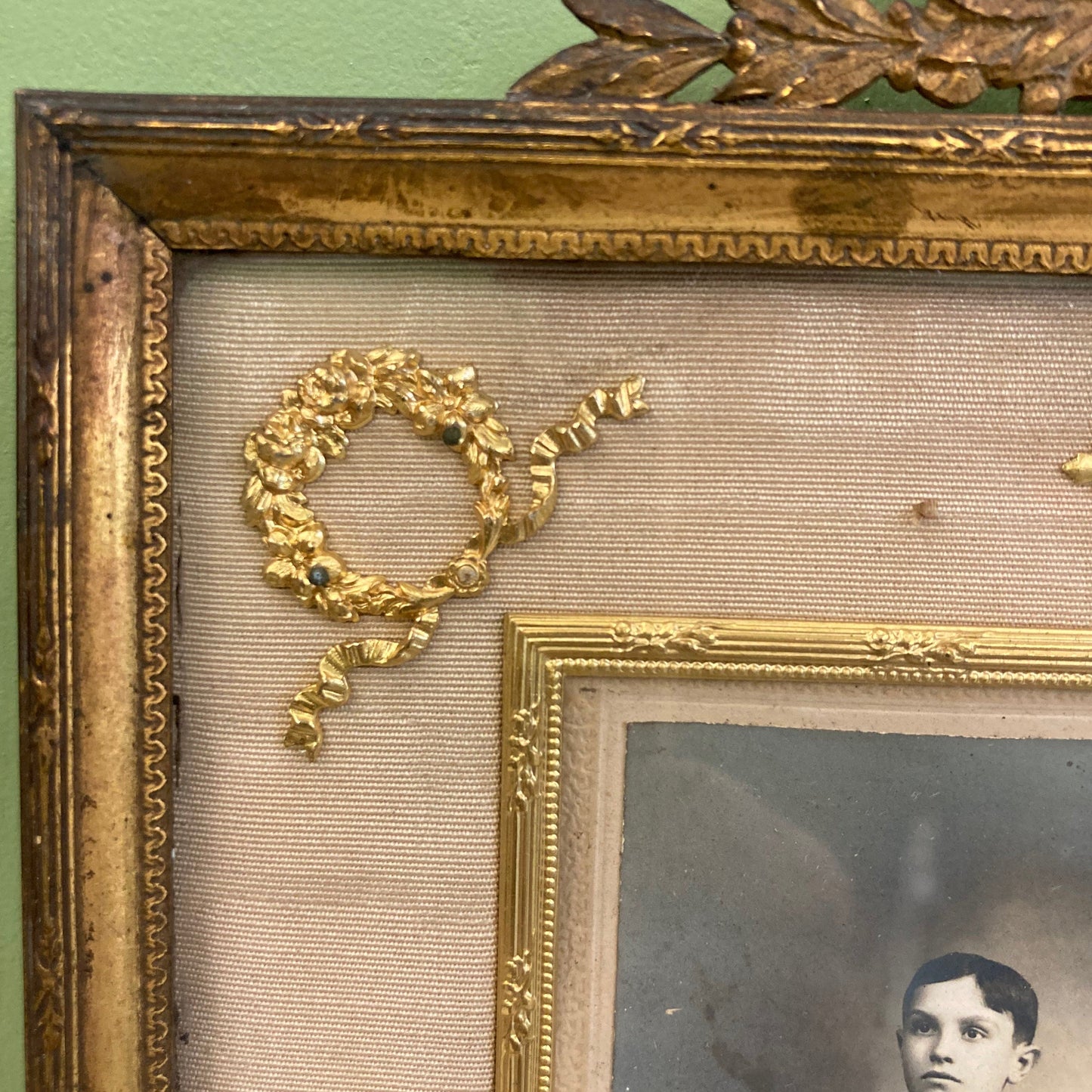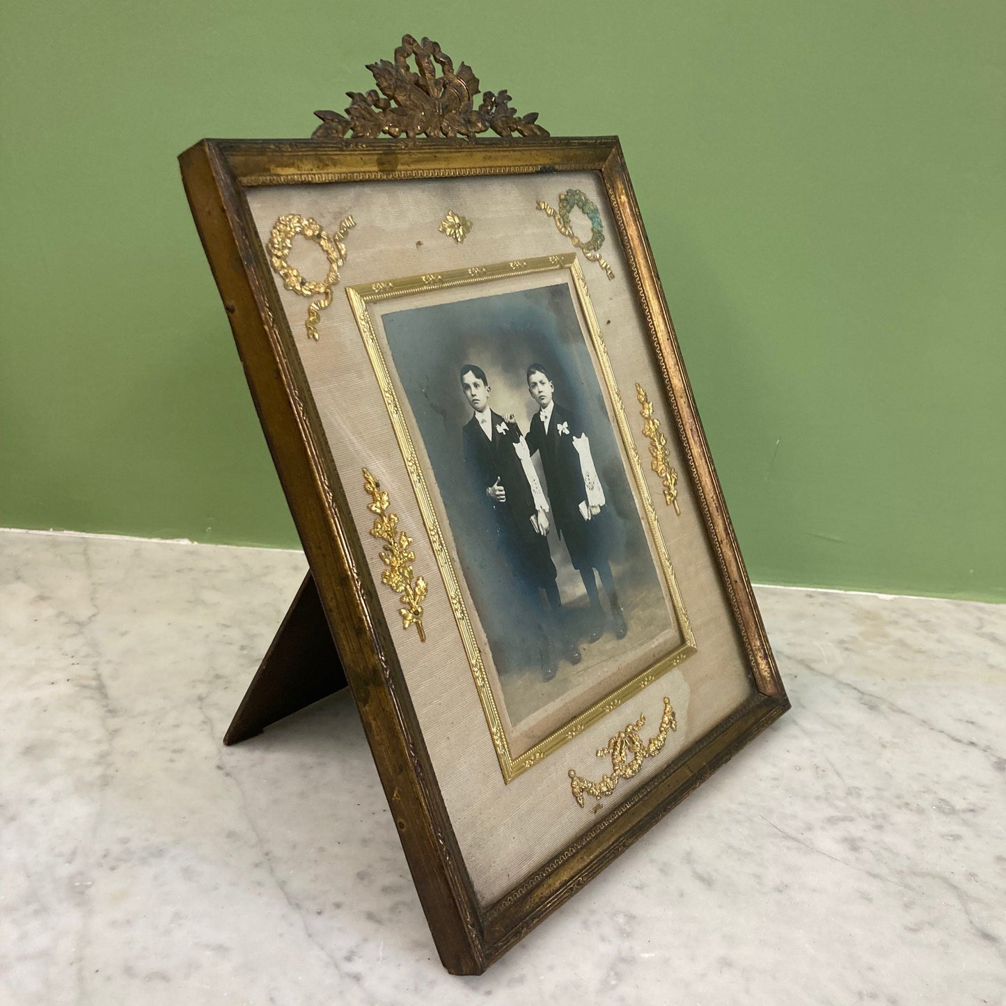 Antique Louis XVI style gilt bronze photo frame from the late 19th century.