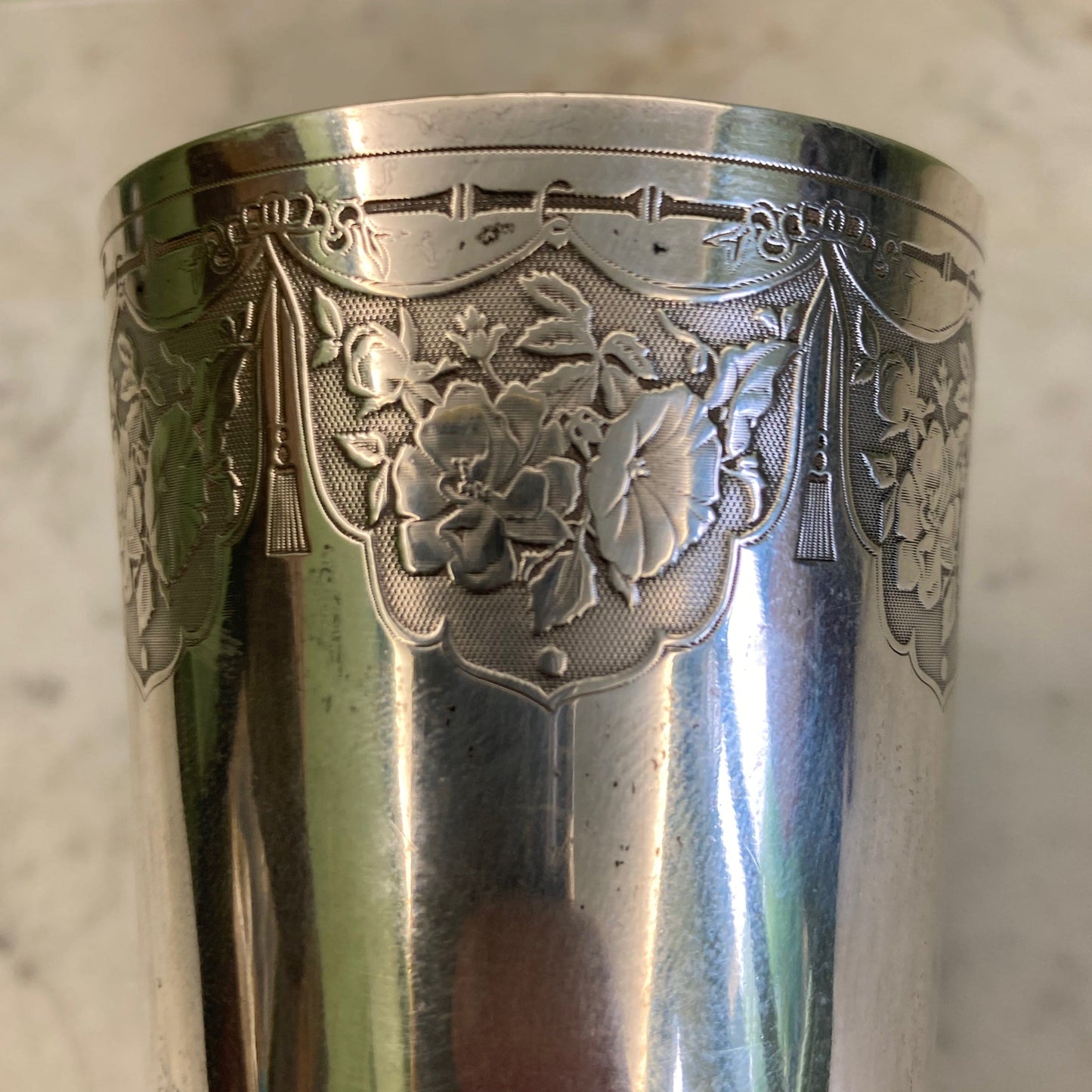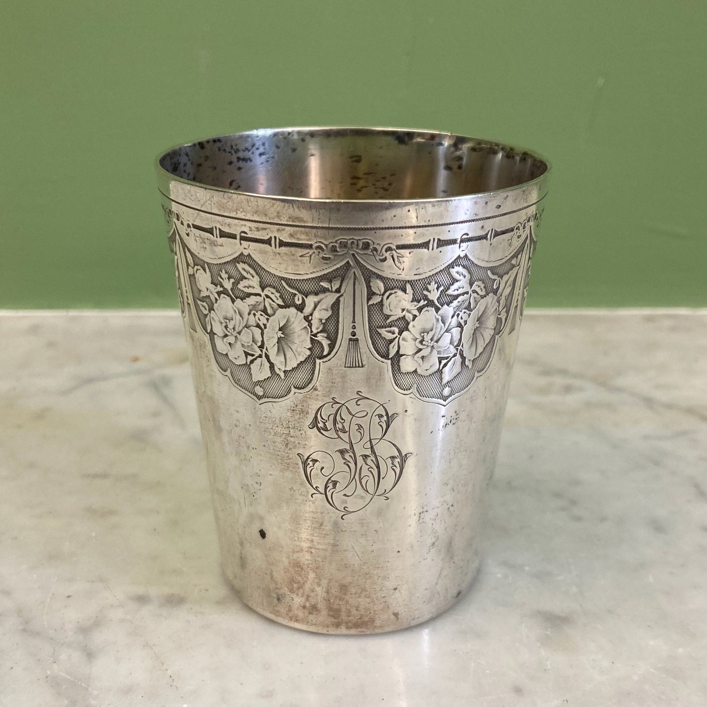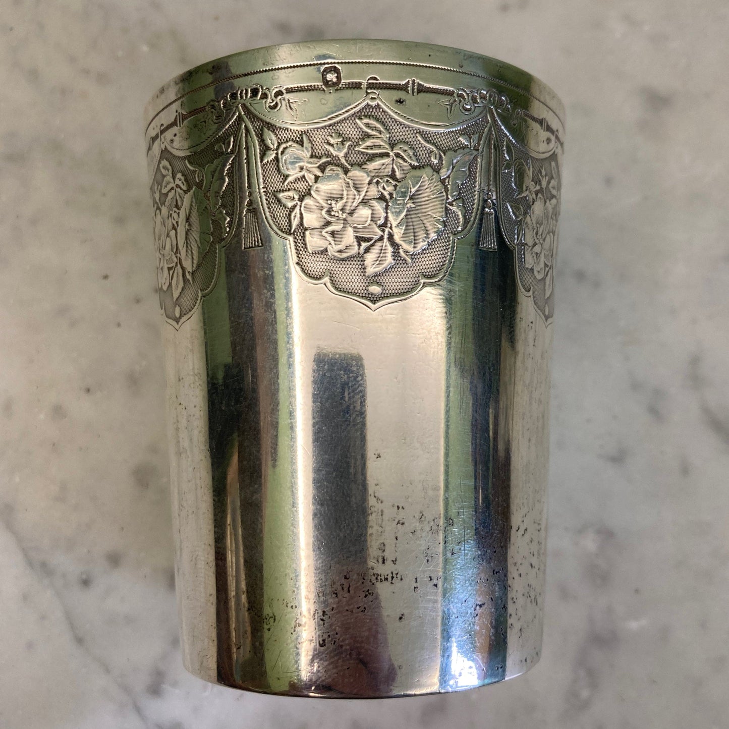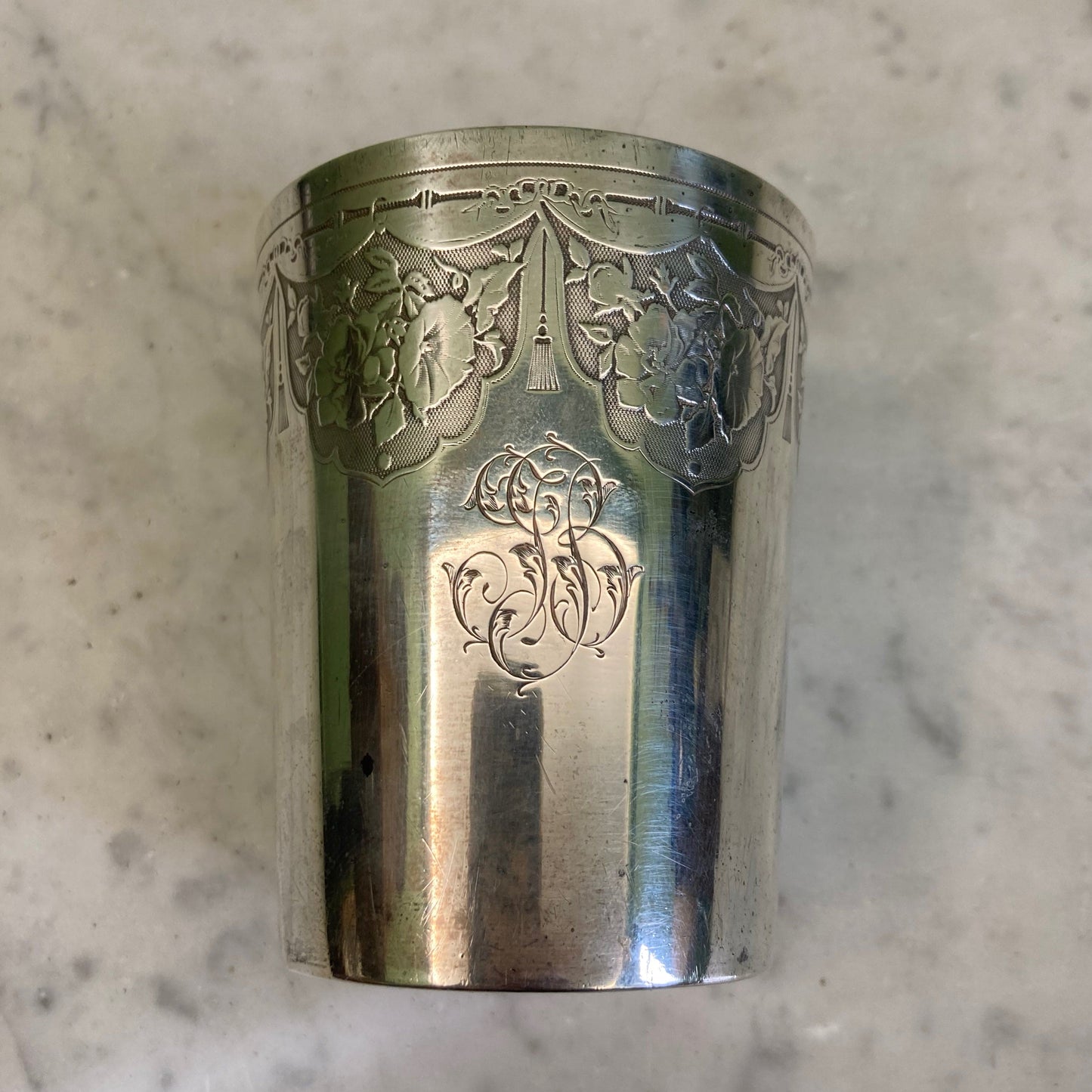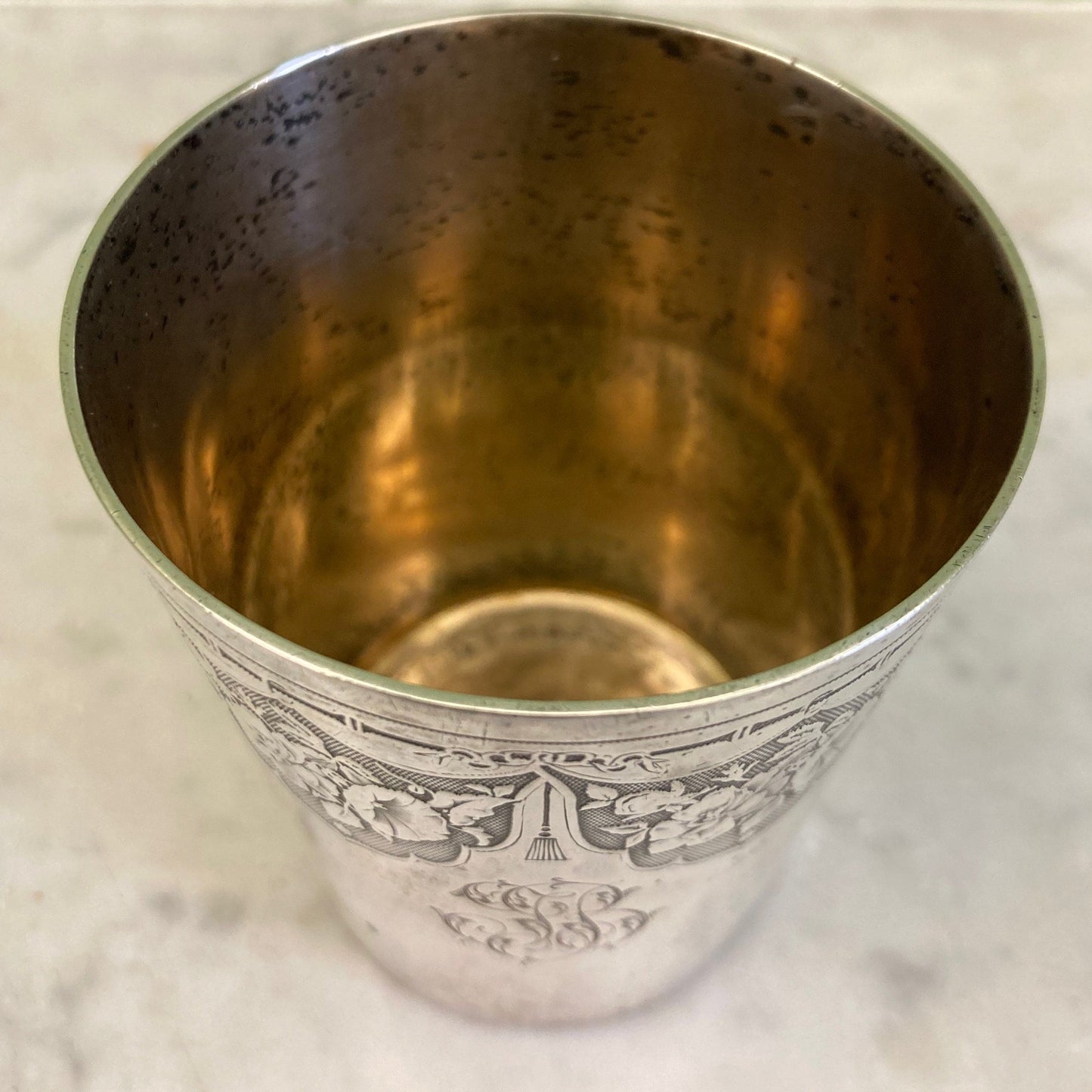 Antigua copa de plata maciza, punzón Minerva de primer título.