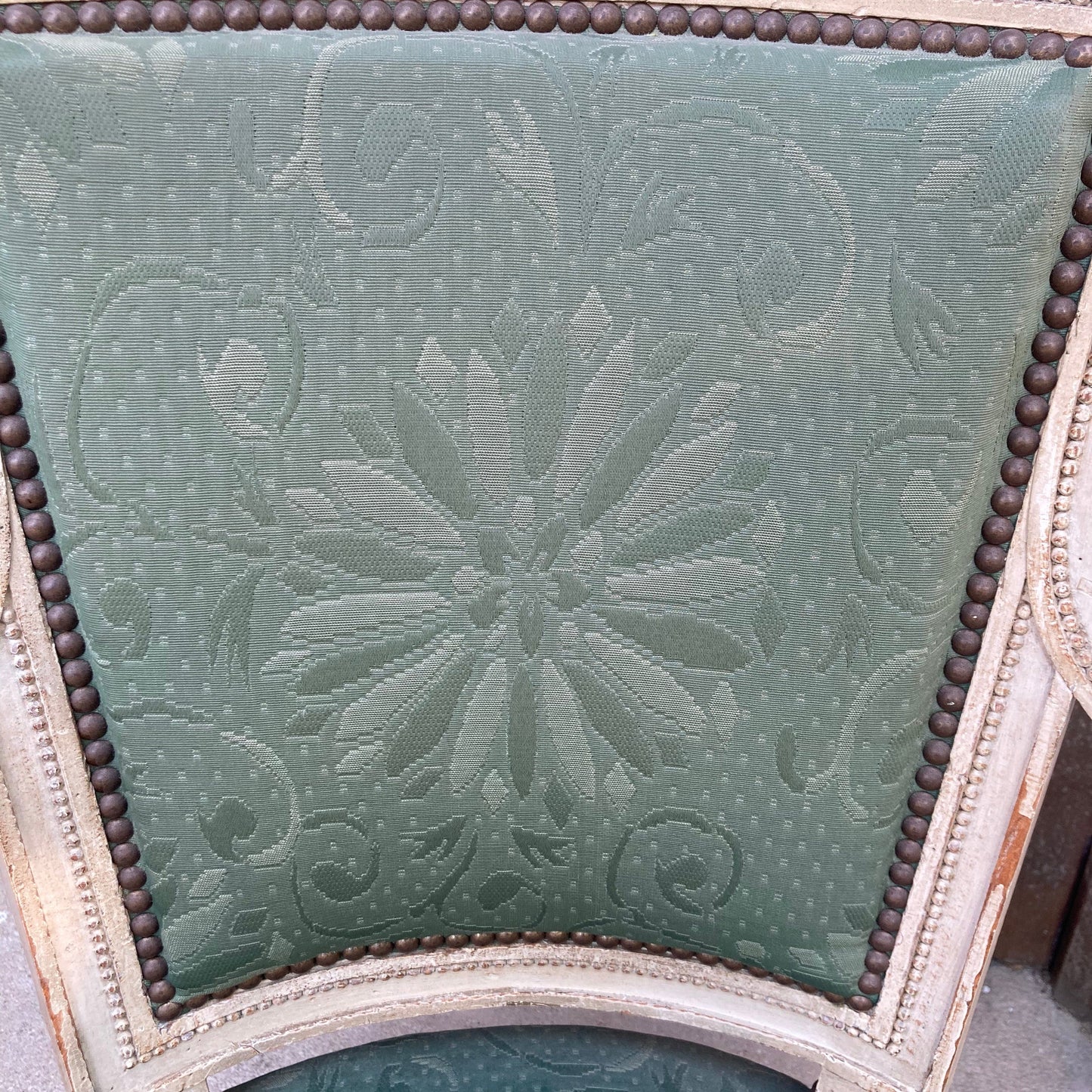 美しい18世紀末の椅子のペア。グレー白のラッカー仕上げブナ材のディレクトワール様式