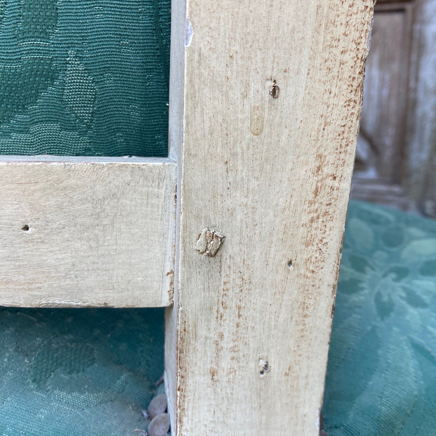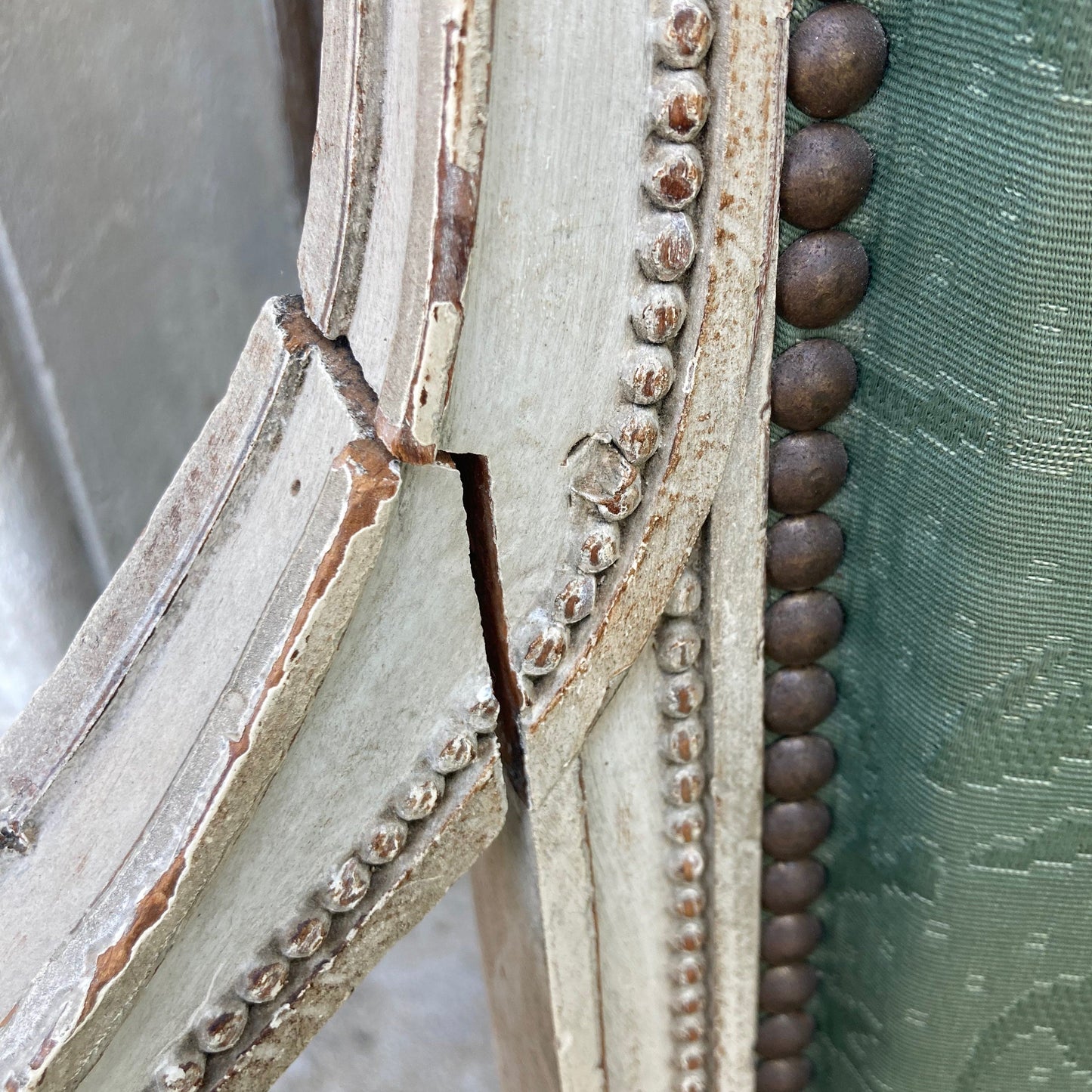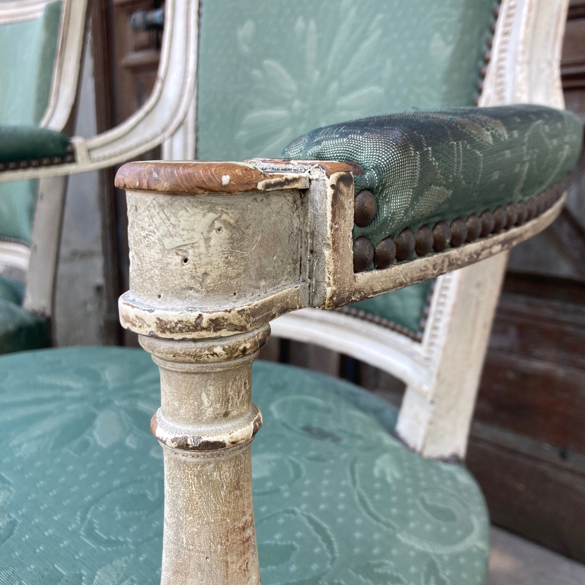 肘掛けの一つにわずかに開いたホゾが見られます。