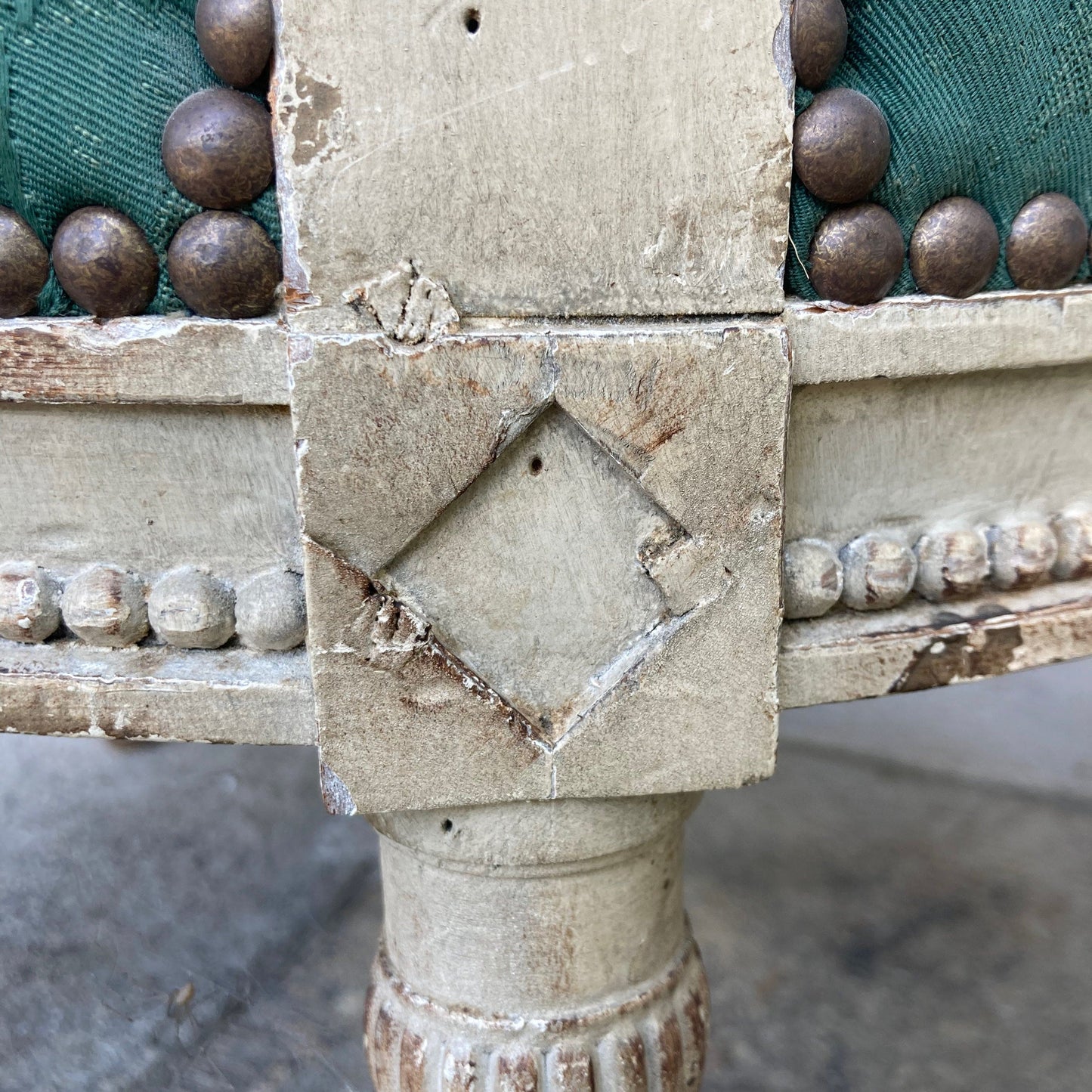肘掛けはゴドロン装飾のバルスターフォルムのコンソールに支えられています。