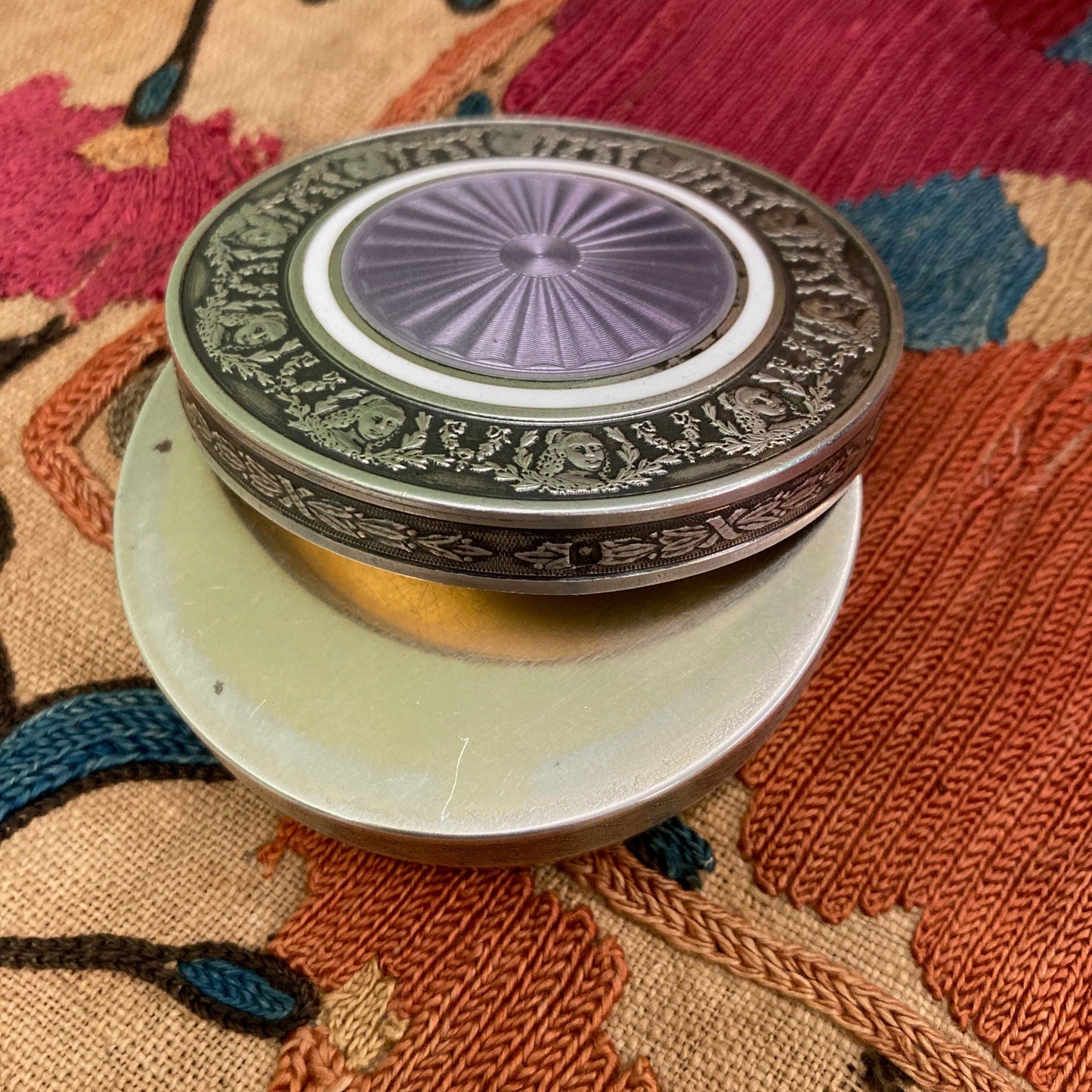 古い純銀製のピルケースとギヨシェエナメル。