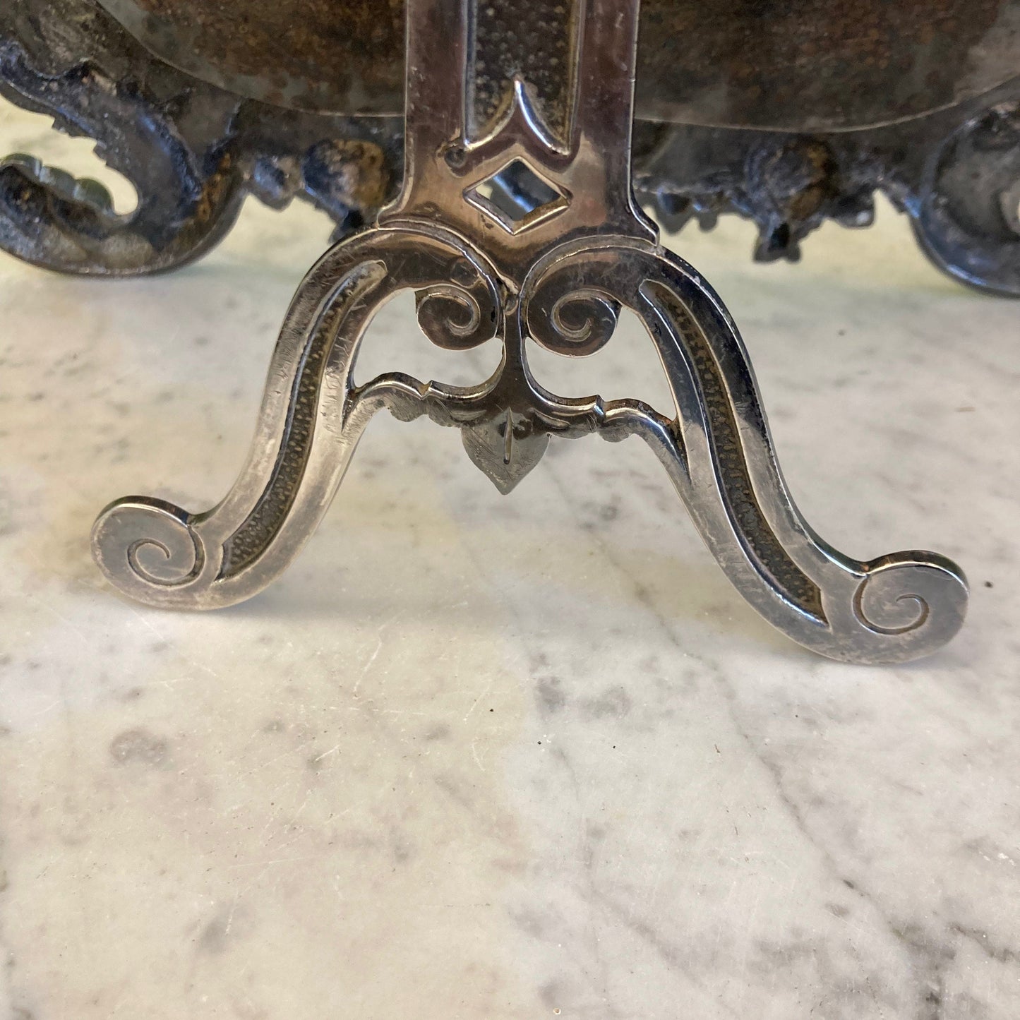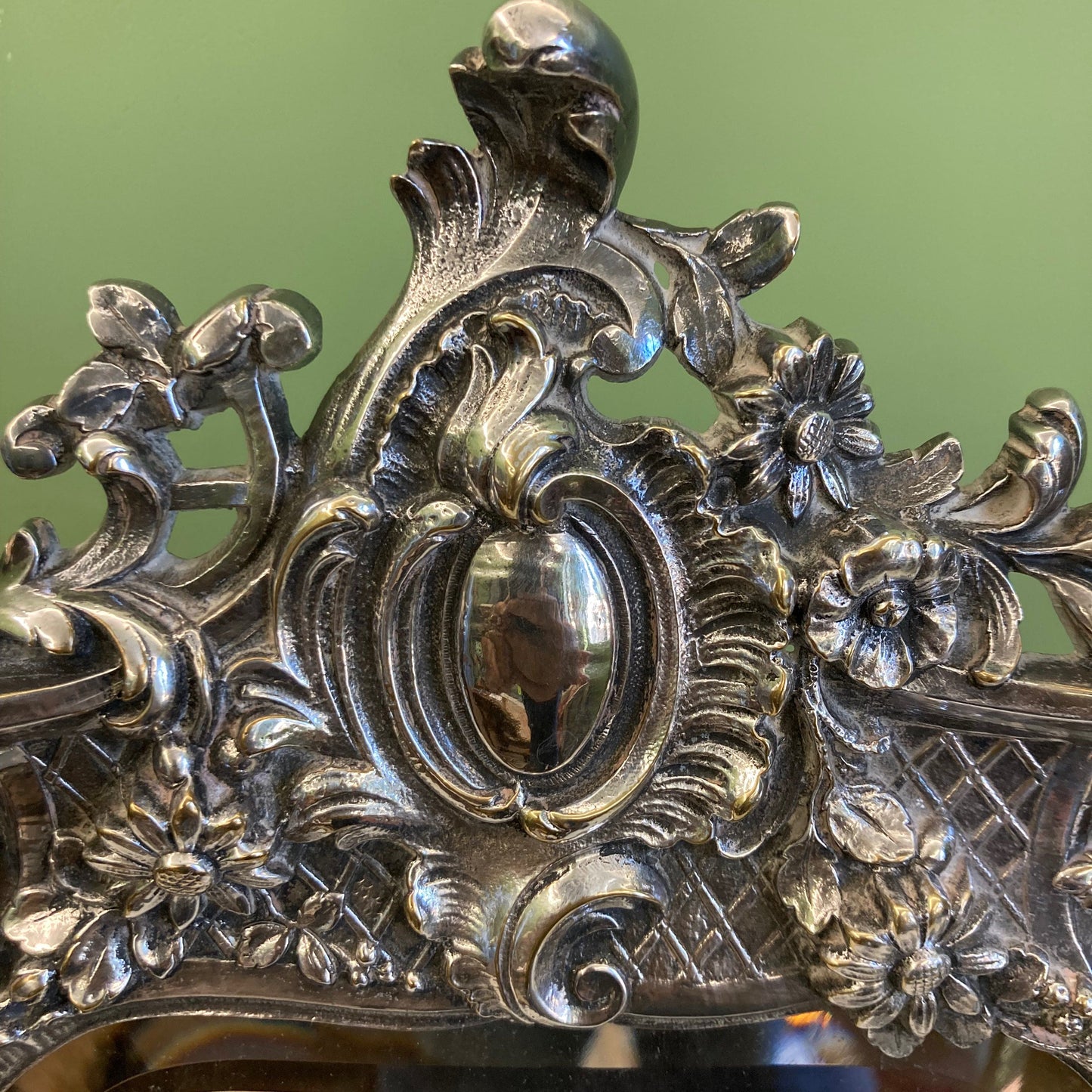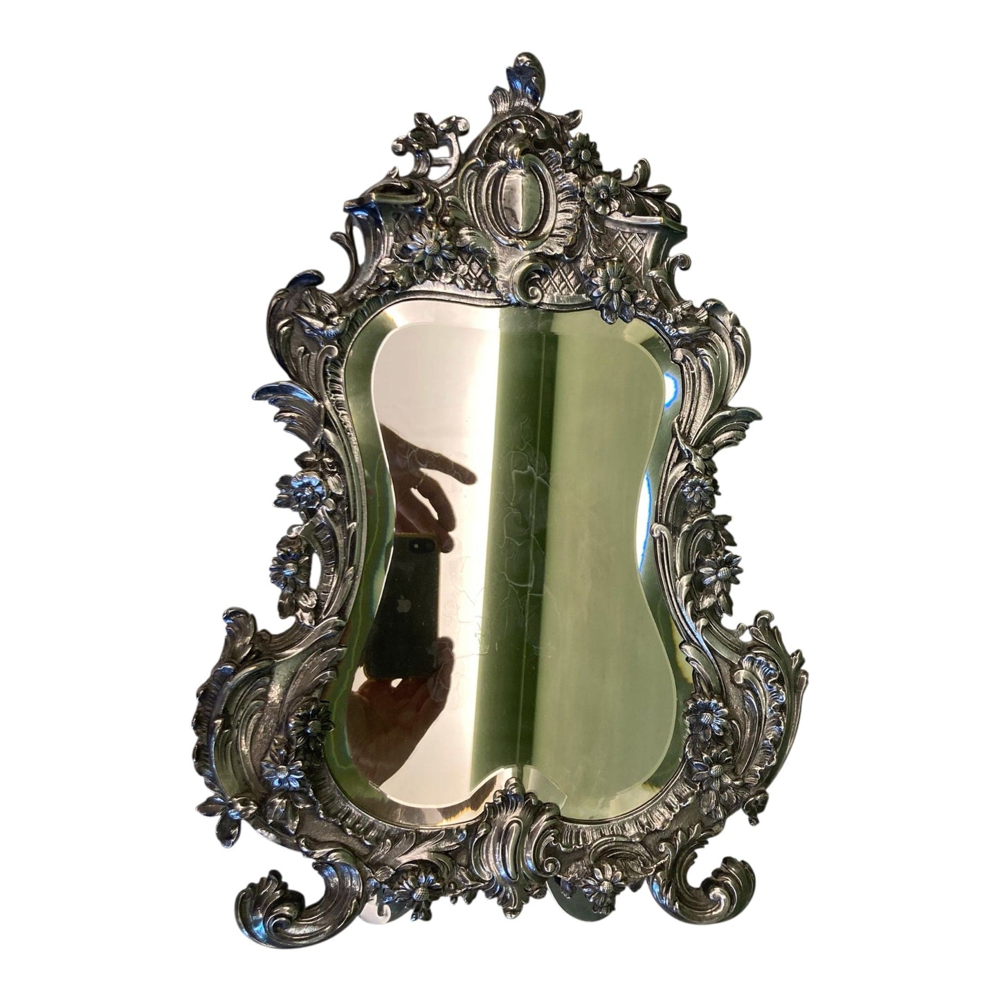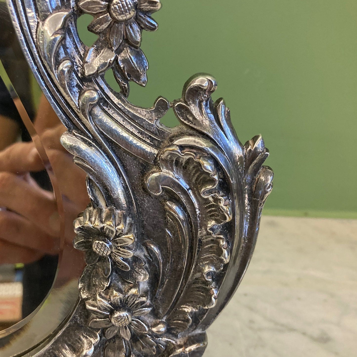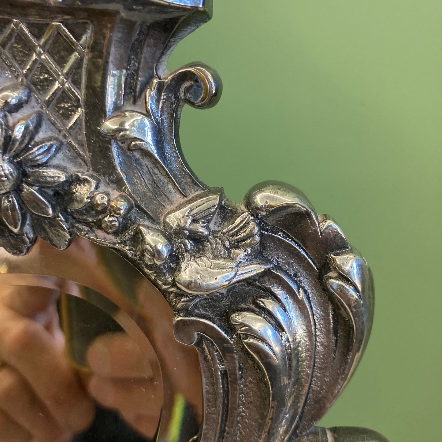 Ancien miroir de table 19e. bronze argenté inspiration rocaille