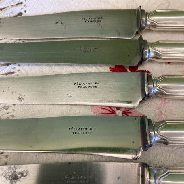 12 больших столовых ножей из посеребренного металла Félix Frères Toulouse